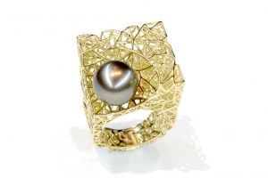 Anello in oro con perla di Tahiti